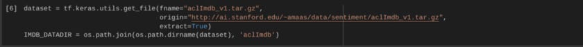 In the above code, get_file (downloads a file from URL), origin (represents the URL), extract = True (download file from the archive of dataset).