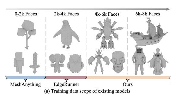 Summary: The authors introduce a compact yet powerful mesh representation, Blocked and Patchified Tokenization (BPT), enabling the generation of meshes with over 8,000 faces. BPT compresses mesh sequences through block-wise indexing and patch aggregation, reducing sequence length by approximately 75% compared to the original data. This compression breakthrough allows for the use of higher-face-count mesh data, enhancing detail and robustness in mesh generation. Leveraging BPT, the authors developed a foundational mesh generative model trained on scaled mesh data, allowing flexible control over point clouds and images. The model achieves state-of-the-art (SoTA) performance, generating meshes with detailed structure and accurate topology, positioning it for potential direct application in products.